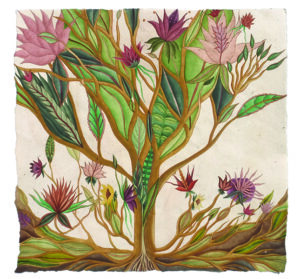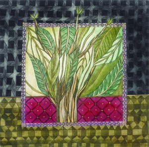 colour woodcut, 7" x 7" Anong Migwans Beam
