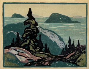 colour woodcut, ed. 105/150, 8" x 8" Anong Migwans Beam