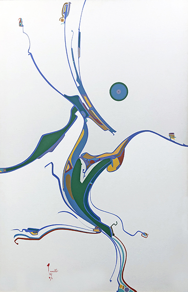 Alex Janvier was born in LeGoff Reserve, Cold Lake First Nations, Alberta, in 1935. He was the recipient of many awards and honors over his lifetime, including the Governor General’s Award for Visual and Media Arts, the Order of Canada, the National Aboriginal Lifetime Achievement Award and two Honorary Doctors of Law from the University of Calgary and the University of Alberta. In 1993 a major retrospective organized by the Thunder Bay Art Gallery, traveled to public galleries across Canada followed by a retrospective mounted by the Art Gallery of Alberta in 2012 and the retrospective Alex Janvier: Modern Indigenous Master, organized by the National Gallery of Canada and presented in Ottawa from November 2016 to April 2017. Over his fifty year career, Janvier participated in group shows at the National Gallery of Canada, the Thunder Bay Art Gallery, the Art Gallery of Nova Scotia, the Canadian Museum of Civilization, and the Southwest Museum in Los Angeles, CA among many others.