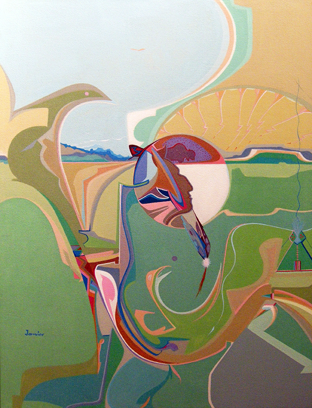 Artist Specialization – Lyrical Abstraction: Janvier’s unique and authentic style, a combination of Indigenous and modern art influences and techniques, is not seen anywhere else in the world. While Janvier recognizes artists such as Wassily Kandinsky, Paul Klee and Hans Hoffman as influences, his unique style is infused with the iconography of his Dene heritage and culture.