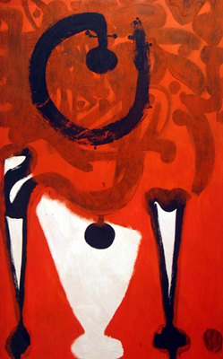 Harold Town's participation in the Painters Eleven also helped to bring his artwork to the centrefold of the Canadian art scene. The group's first exhibition took place at the Roberts Gallery in Toronto in 1954. Their efforts helped popularize the new style of Abstract Expressionism, which was slowly edging its way into Canada in the late 1950's from New York. By 1960, Harold Town's career took off as he became internationally recognized for his monumental compositions and unpredictable use of acid colours. His talent and dedication to art was shown through his ability to work with a variety of materials, colours and subject matters in sculpture, printmaking, drawing and painting. He continued painting up until a few months before his untimely death from cancer in 1990 at the age of 60.
