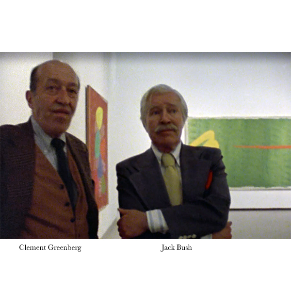 Greenberg met Bush in 1957 during a Toronto visit to the studios of several members of Painters Eleven. At the time, Greenberg was not impressed by Bush's oil painting, but admired the directness and simplicity of his watercolours and encouraged him to follow them up on canvas. Bush responded with large, thinly brushed paintings exploiting enlarged versions of his characteristic handwriting. He never looked back.