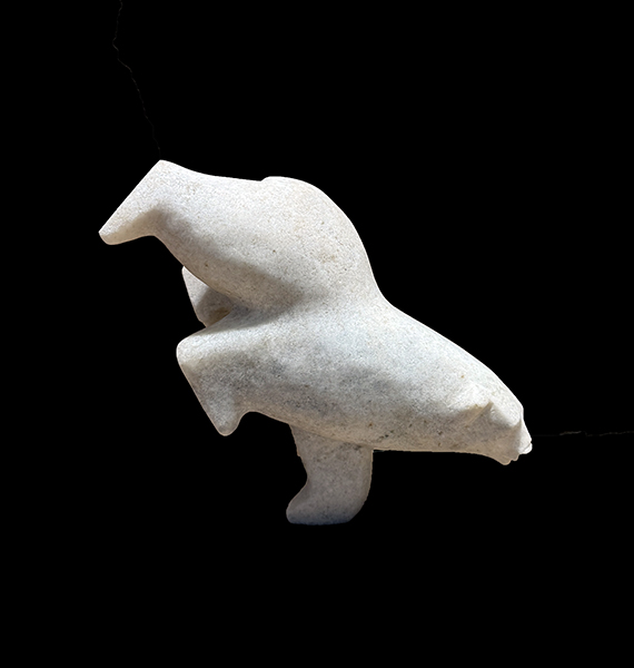 Living primarily off the land through hunting and fishing, Malito’s close relationship with the Arctic wildlife deeply influences his work. This connection to nature is evident in his sculptures, where keen observation and sensitivity to animal movement blend with a unique stylistic approach. His sculptural style combines naturalism, careful observation, and reduction to stylized forms, sometimes bordering on abstraction, capturing the very essence of the animals he portrays.