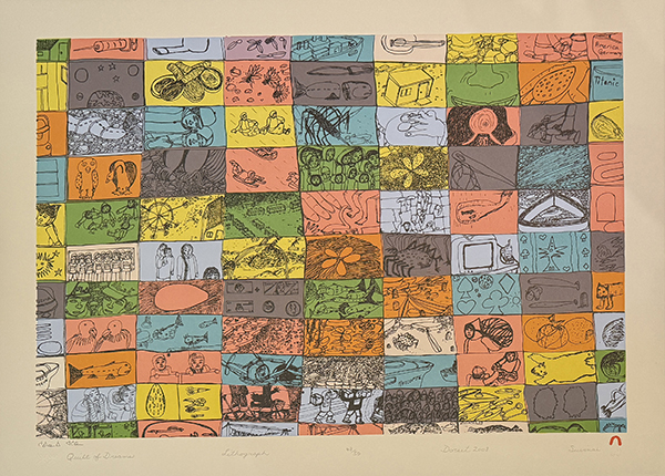 Shuvinai Ashoona was born in 1961 in Cape Dorset, Northwest Territories, now Kinngait, Nunavut, to a family of celebrated artists. Her father Kiugak Ashoona was a sculptor, her mother Sorosilooto Ashoona was a graphic-artist and her grandmother Pitseolak Ashoona was one of the most acclaimed Inuit artists of her generation. She is also related to artists Napachie Pootoogook, her aunt, and Annie Pootoogook, her cousin, with whom she was selected to participate in the 2012 Massachusetts Museum of Contemporary Art, Oh, Canada a showcase of contemporary Canadian artists curated by Denise Markonish and held at the Massachusetts Museum of Contemporary Art. Ashoona attended high school in Iqaluit, but soon returned to the Kinngait region with her daughter, living with her family at outposts like Luna Bay and Kangiqsualujjuaq. This experience informs her detailed, animate drawings of Inuit Nunangat. The Ashoona family returned to Kingait in the late 1980s, and Shuvinai began visiting Kinngait Studios. There her artistic style was influenced by her aunts and fellow studio members Napachie Pootoogook and Mayoreak Ashoona, as well as Kenojuak Ashevak.