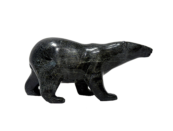Tim Pee’s favorite subject is the polar bear, an iconic Arctic animal and a central theme in Inuit art. He is particularly known for his expertly crafted polar bear sculptures, depicted in various poses—standing, walking, or in more dynamic stances—capturing the animal’s strength, grace, and elegance with remarkable precision. His work is characterized by fluid and well-executed forms, where every detail, from the powerful muscles to the subtle facial expressions, is carefully rendered.